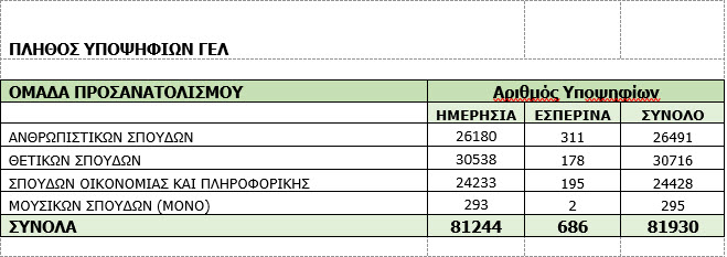 Επίσης, ανακοινώνονται στατιστικά στοιχεία για τις φετινές βαθμολογικές επιδόσεις των υποψηφίων στις πανελλαδικές εξετάσεις ΓΕΛ και ΕΠΑΛ.