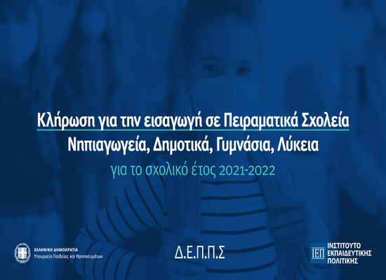 Η ηλεκτρονική κλήρωση για την εισαγωγή μαθητών και μαθητριών στα Πειραματικά Νηπιαγωγεία, Δημοτικά, Γυμνάσια και Λύκεια για το σχολικό έτος 2021-2022 πραγματοποιείται σήμερα, Πέμπτη 24 Ιουνίου 2021 στις 4.30 μ.μ. και θα μεταδοθεί ζωντανά στο σύνδεσμο: https://www.youtube.com/watch?v=6i2P42TT-lI